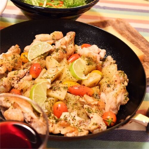 みんなの好きなチキンで作る 簡単アクアパッツァ! 彩りよく仕上げたら、 気分はスパニッシュバル~。。(^_−)−☆ 【材料 】(4〜5人分) 鶏手羽元 500〜600gジャガイモ 2〜3個ミニトマト 10〜15個オリーブオイル 大さじ1にんにく 1片白ワイン 大さじ4水 大さ…