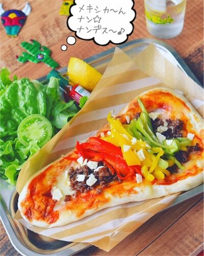 いろんなアレンジがほんとに楽しい! 魔法のランプのような形の 美味しいインドのナン! グルメテーブル絨毯のように いろんな具材でどこの国にでも行けちゃいそうです~! カラーピーマンでカラフルナンタコス☆* チーズがとろけたふんわりナンで、 夏にぴ…