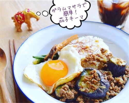 茄子の美味しい時期ですね〜! スパイスひとふりで キーマカレーが本格的な味わいに! ガラムマサラを使った簡単レシピいかがですか〜 ナスのスパイスキーマカレー☆カフェ風。。 カレー粉を使わずに スパイスを効かせて作る*** ナスの甘味がシンプルに美…
