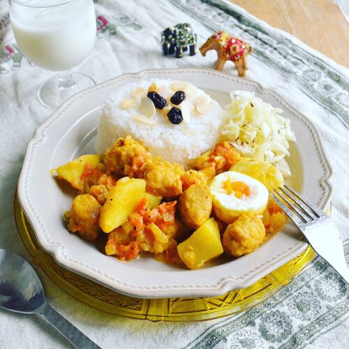 インド人もびっくりの 本格的なスパイスは 簡単シーズニングにおまかせです。。。 (^з^)-☆ チキンボールとジャガイモと卵のインド風カレー 冷凍ミートボールで簡単!ジャガイモや卵で子供でも食べやすい具材です。 【材料】(3人分) 冷凍チキンボール 250g 玉…